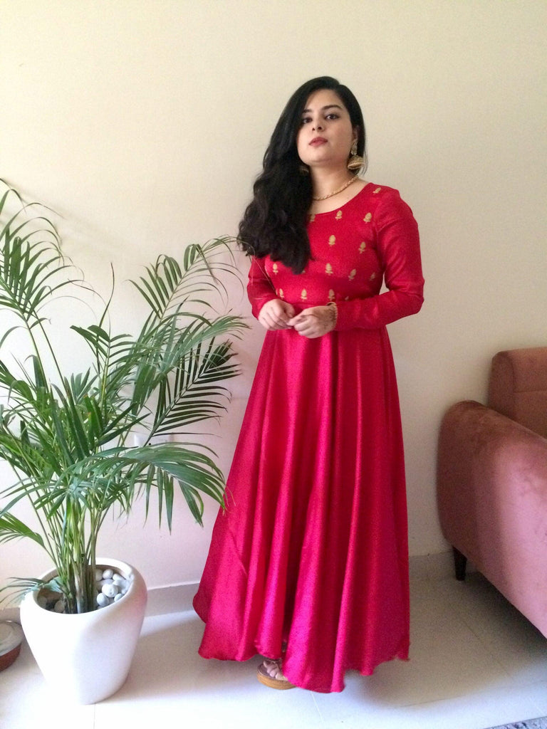 The kind of elegance that embroidered outfits have, cannot be matched by anything else, just like our red satin dress