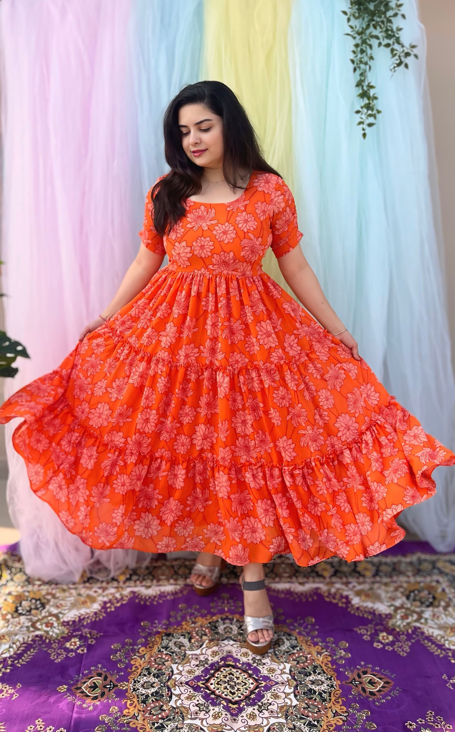 Elevate your style with this stunning 3 tier midi dress, crafted from premium georgette fabric . Super comfortable and light weight,it’s perfect for any occasion- whether casual outings or festive gatherings. Customise it to your fit, and enjoy effortless grace. Ideal for maternity wear too!